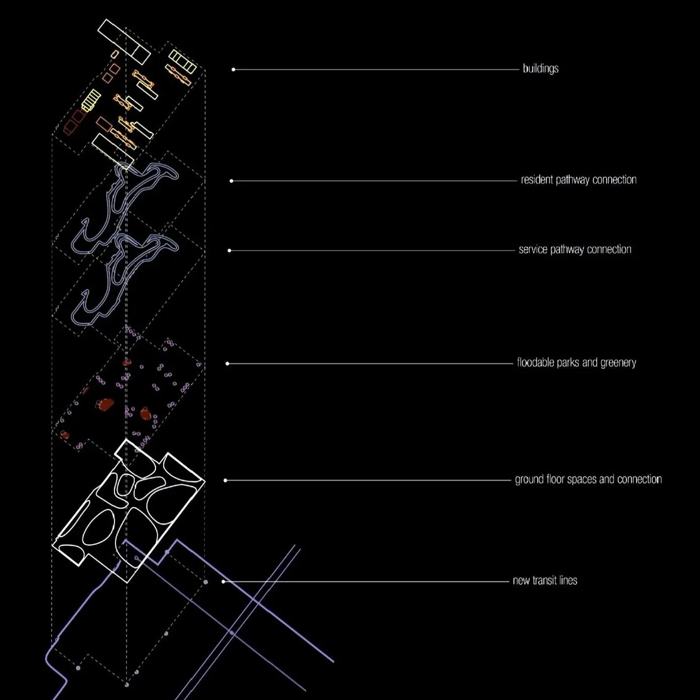 I determined that Sunset Park’s economy would benefit greatly from a research facility related to its industries and industrial waste facility. To master a master plan for that, it would require designing for the environmental challenges of this specific area: water levels keep rising, infrastructure/ energy infrastructure is failing, and several buildings are falling apart. With my collaborators, we realized a way to fix it all.